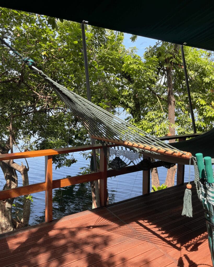 Jicaro Island Lodge is a private island retreat, just a short boat ride from Granada, one of Nicaragua’s most charming colonial cities. The lodge is astonishingly intimate, with just a handful of rooms, each designed to frame the lake’s beauty. Charlie spent hours in a hammock on my balcony, almost skimming the water below, swaying gently with the breeze while the world went by in perfect stillness. Kayaking across the lake, fishing at sunset, or simply letting the day unfold from your deck are the rhythms that define a stay here.