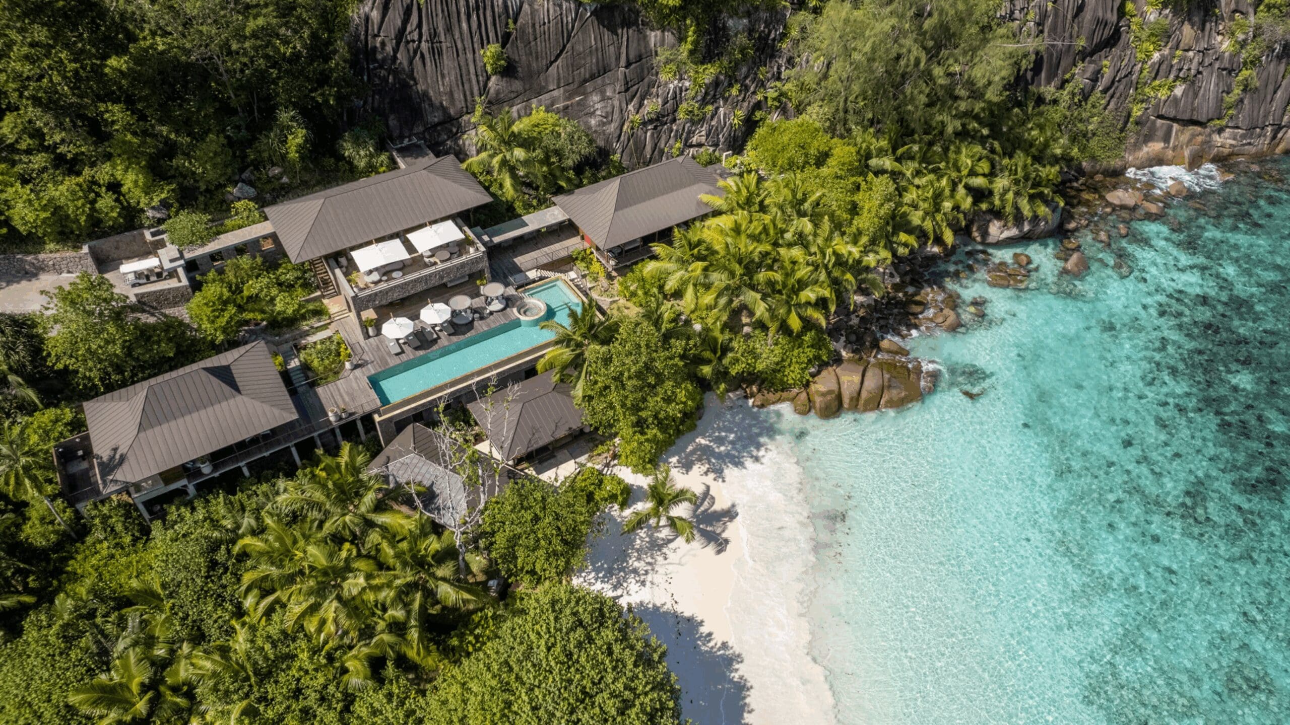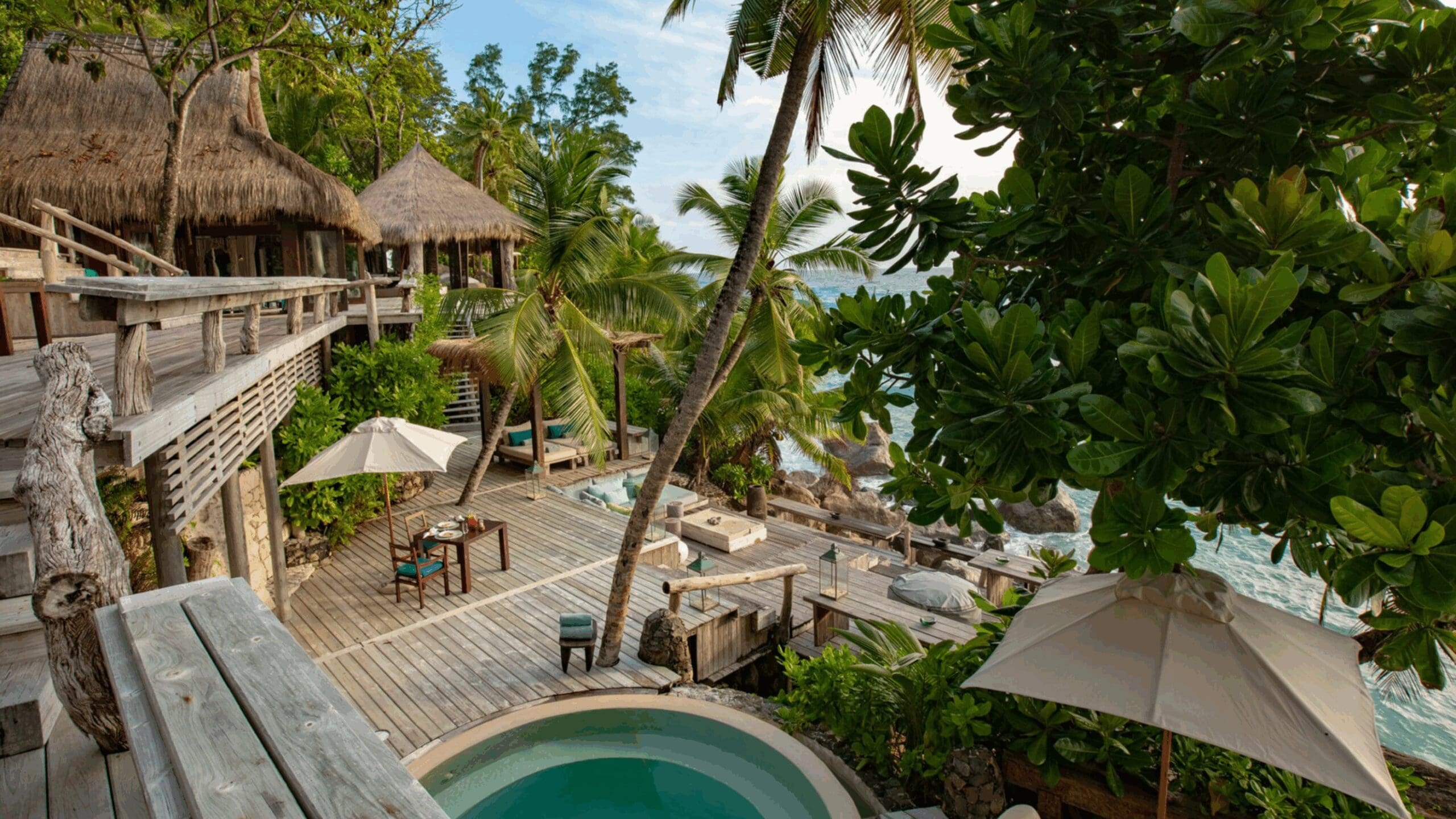 Getting here is straightforward: a short transfer from Seychelles International Airport brings you to the resort, where a funicular or garden paths lead to your villa – the views alone make every step worthwhile. Villas are generous and private, each with a plunge pool, wrap-around terraces, and interiors that combine sleek tropical design with the comfort you expect from a Four Seasons. Some even come with direct access to the beach, making it perfect for families or couples who want both privacy and a touch of adventure.