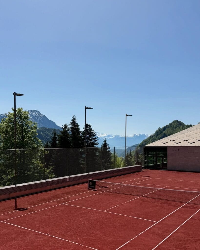 Rising above Lake Lucerne, the resort’s rooftop clay court is framed by dramatic Alpine peaks, the lake below acting as a mirror for every serve. Swiss precision defines the property: contemporary suites, wellness-led programs, mountain trails, and lakeside excursions combine to offer a full spectrum of experiences. Families can split time between court rallies and spa indulgence, couples can enjoy alpine vistas while playing doubles, and all guests can soak in the striking natural surroundings. The mix of activity, design, and panorama gives the court a unique thrill – you’re literally suspended between mountain and lake.