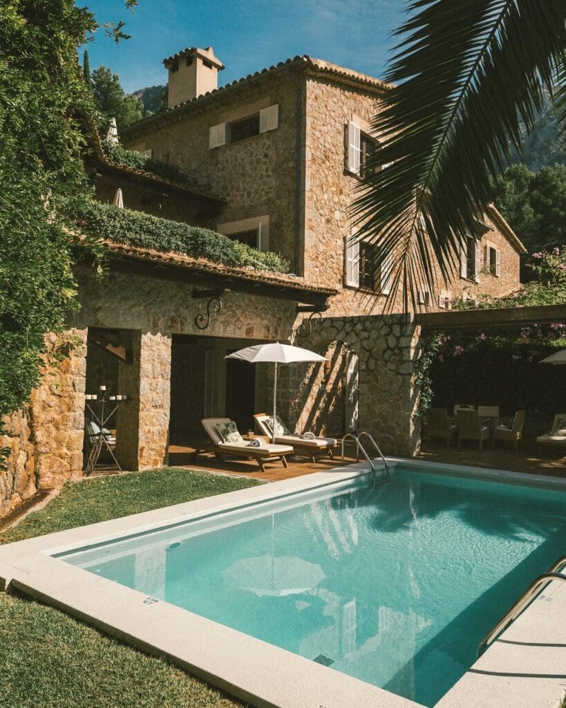 Perched in the hills above Deià, La Residencia feels like a private village. The rooms and suites are intimate, yet spacious, with terraces that invite slow mornings watching the sun ignite the Serra de Tramuntana. Gardens spill down towards olive groves and cypress trees, and wandering through them – hand in hand – is as indulgent as any spa treatment. Dining is a pleasure: breakfast on your terrace with local pastries and coffee, dinner in the candlelit garden restaurant, or a tasting menu from everything between fresh seafood to slow-cooked meats, paired with local wines. Days can be spent exploring quaint mountain villages, hiking the coast, or simply lounging by one of the resort’s pools. Evenings are made for intimacy, whether sharing a bottle of rosé in your room or taking a moonlit stroll through the olive orchards.