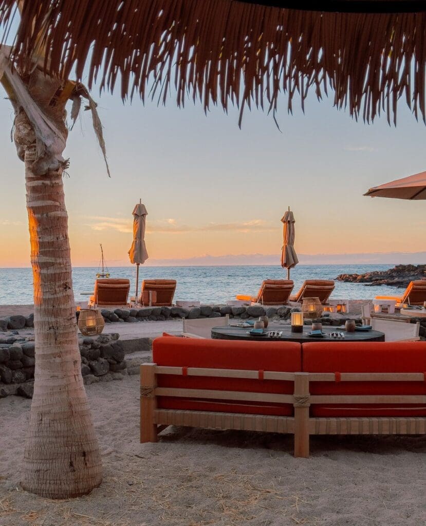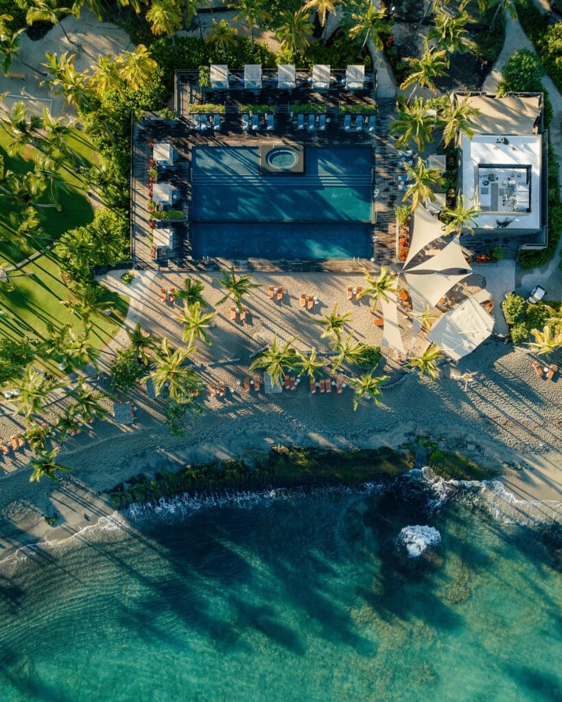 Rosewood Kona Village makes Hawai‘i’s Big Island feel like it’s been holding its breath just for you. Set on 81 oceanfront acres along Kahuwai Bay on the Kona Coast, its 150 bungalows are tucked among palms and volcanic rock, each with a private lanai for morning coffee or evening cocktails with uninterrupted Pacific views. The design is modern but unmistakably Hawaiian – layers of wood, woven textures, and subtle blue accents evoke the sea, while spacious bathrooms with deep tubs and indoor-outdoor showers nod to the island’s volcanic landscape. Bike along sandy paths to Moana or Kahuwai Cookhouse, kayak past mangroves, or paddle an outrigger canoe at sunrise. Shipwreck Bar, an actual boat turned cocktail haven, is where a Lilikoi Margarita tastes even better as the sun slips into the horizon. Evenings invite long walks under swaying palms or starlit dinners on your lanai. Sustainability threads through everything – solar power, LEED-certified buildings, reverse-osmosis water, and collaborations with local cultural and ecological projects – yet it never feels like a lesson. At Rosewood Kona Village, romance is woven into the island itself: in the scent of plumeria, the whisper of waves, and the effortless way the staff anticipate exactly what you need.