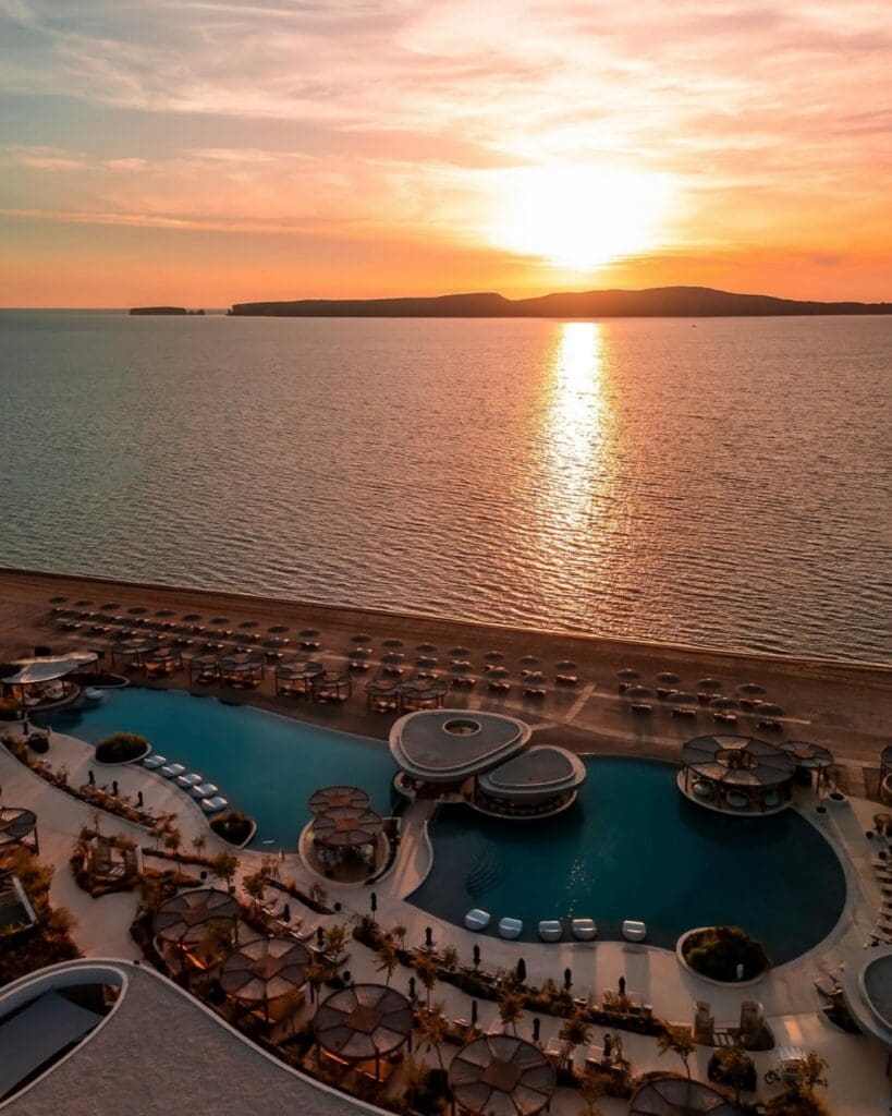 Set along the sweeping shores of the Peloponnese, Mandarin Oriental Costa Navarino marries understated elegance with Aegean drama. Rooms and suites look out over the Ionian Sea, with terraces made for lingering over morning coffee or evening cocktails while the light slides across the water. Dining moves effortlessly from the relaxed – fresh Greek mezze and seafood by the beach – to the ceremonious, with tasting menus that celebrate local flavours and craft. Days can be as active or as languid as you like: cycling olive groves, wandering hidden coves, or just soaking up the sun beside one of the resort’s pools. Evenings are quiet, luminous affairs: long dinners, soft music, and the kind of horizon that nudges conversation to turn personal. If romance comes with your family, there’s ample space to spread out, with thoughtfully designed suites and a children’s club that keeps little ones happily engaged. Here, romance is in the space between plans, in the subtle luxuries, and in the way the coastline frames every shared moment.