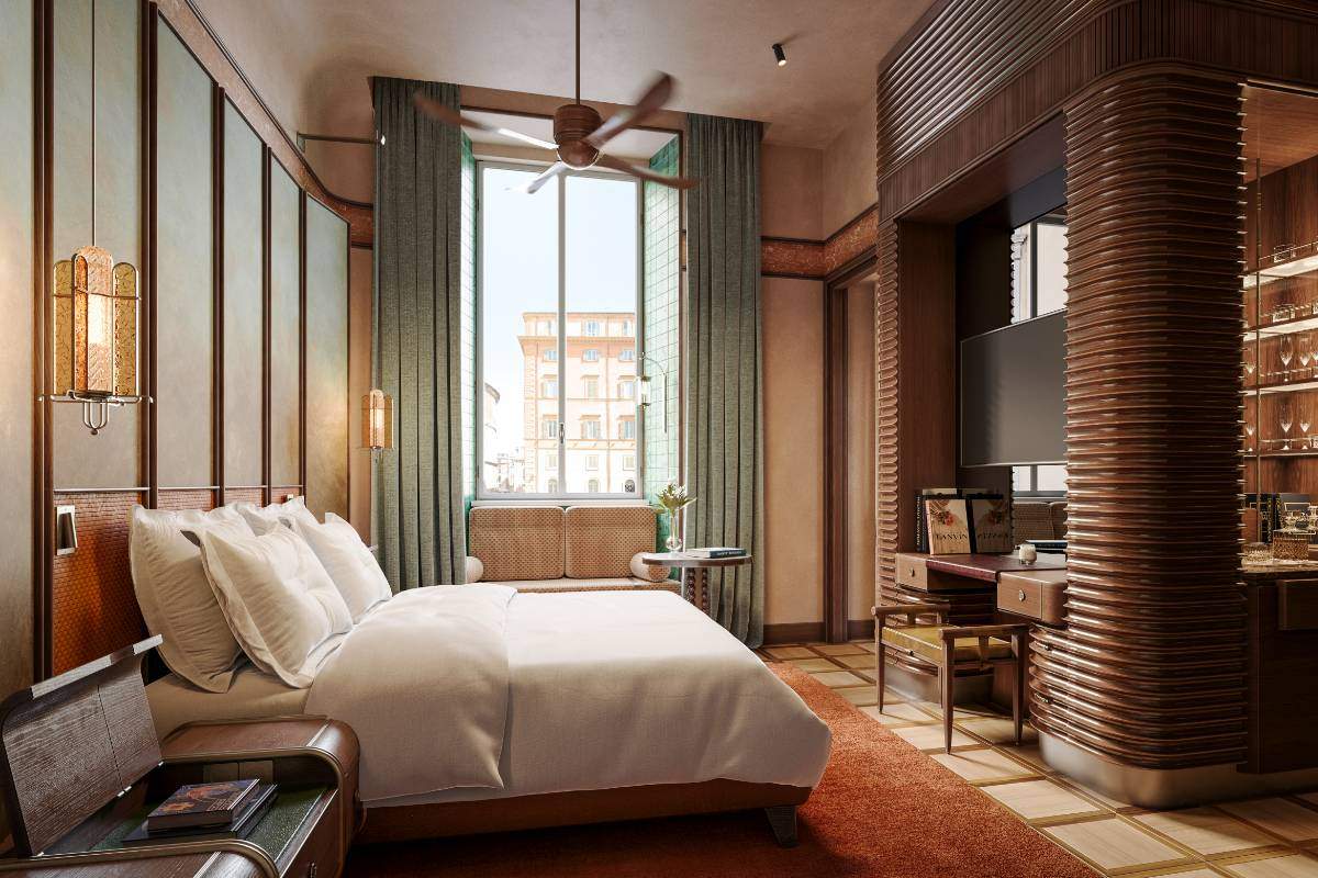 Steps from the Pantheon, Orient Express La Minerva, which opened in April 2025, occupies a 17th-century palazzo that feels both intimate and alive. Interiors by Hugo Toro highlight Italian craftsmanship at every turn – carved travertine panels, textured plaster walls, and Murano glass lighting catch the eye without ever overwhelming it. Details, from the historic skylight over the bar to the rooftop with sweeping city views, create moments of quiet surprise in a city known for grandeur.